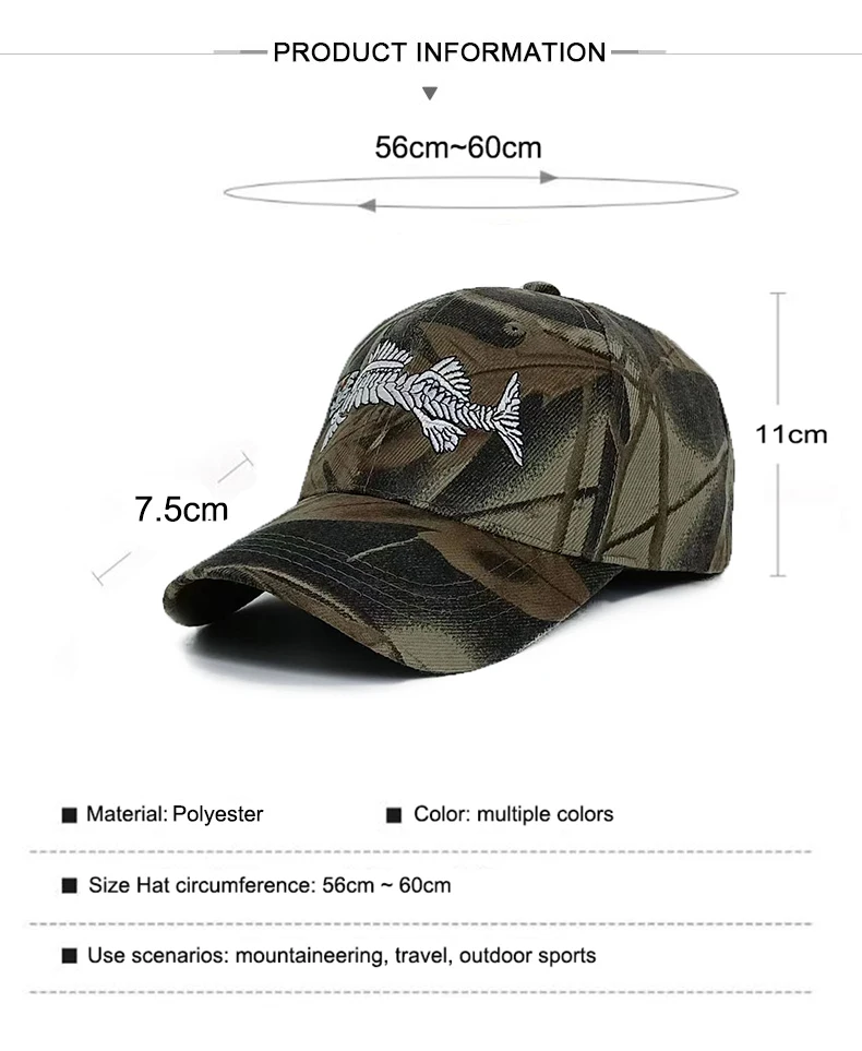 Gorra Camo Unisex con Bordado de Pez – Estilo Snapback Casual para Hombre y Mujer | Ajustable | Outdoor & Hunting Hat
